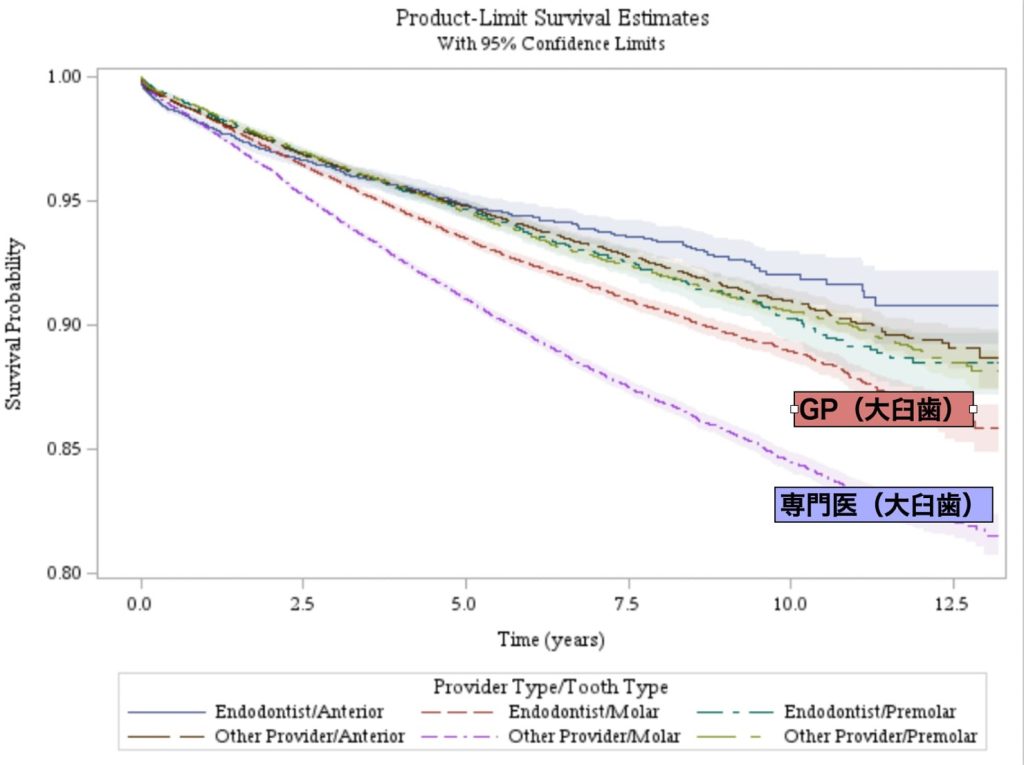初回の根管治療の成功率は比較的高く細菌感染レベルが低い場合は適切に治療すればGP(一般歯科医)でも成功する可能性は高いと思われます。ただし、術者の歯内療法におけるトレーニングの習熟度により成功率にばらつきが出ます。